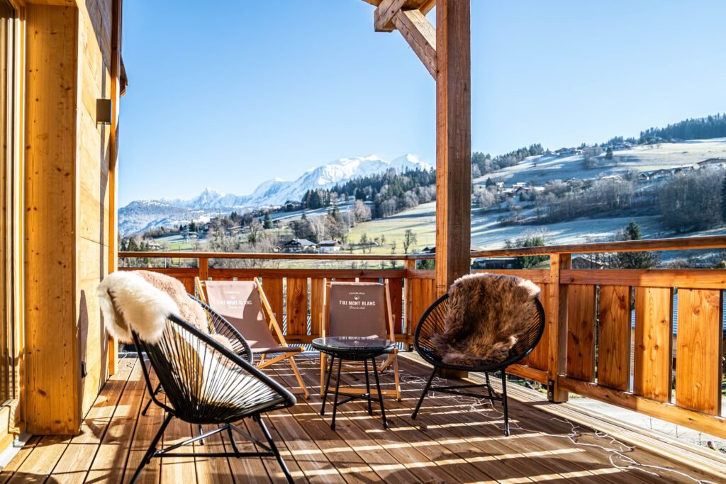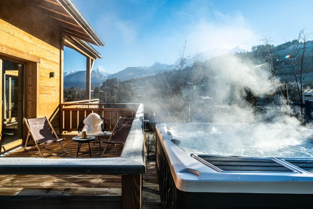 Une terrasse s’étend devant le chalet, offrant un espace extérieur idéal pour se détendre et profiter de la vue imprenable sur le Mont Blanc. Une table extérieure pour 12 personnes est disponible pour manger dehors. Pour une expérience de détente ultime, le chalet est doté d’un jacuzzi privé (7 places) — l’endroit idéal pour se relaxer après une journée de ski ou d’exploration. Le chalet comprend également un garage fermé pour abriter votre véhicule, offrant sécurité et protection contre les intempéries. Des places de stationnement supplémentaires sont disponibles à proximité.